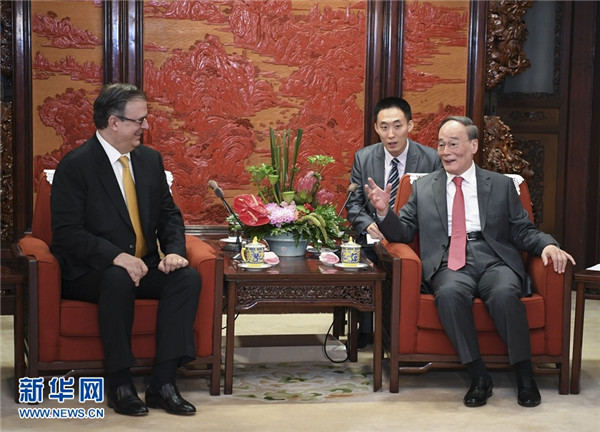 7月1日,國家副主席王岐山在北京中南海會見墨西哥外長埃布拉德。新華社記者殷博古攝