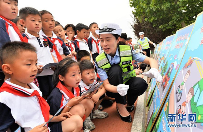 暑假將至,山東省棗莊市臺(tái)兒莊區(qū)實(shí)驗(yàn)小學(xué)組織開(kāi)展“暑假安全伴我行”主題安全教育活動(dòng),向?qū)W生普及交通、消防安全知識(shí),提高學(xué)生自我防護(hù)能力。 新華社發(fā)(高啟民 攝)
