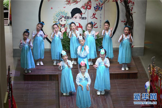 7月4日,德清縣乾元鎮(zhèn)第一幼兒園小朋友們?cè)诔诸悆焊?。新華社記者 郭緒雷 攝