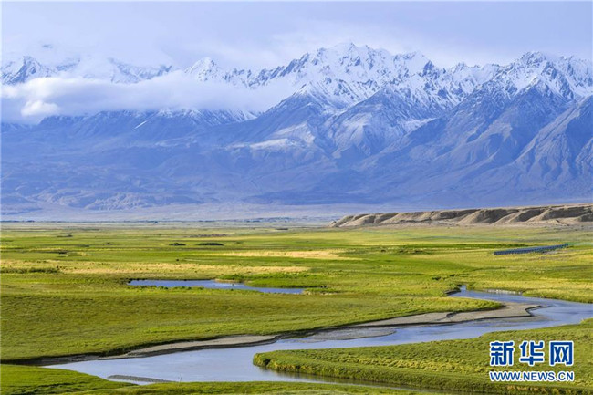 新疆塔什庫爾干塔吉克自治縣塔合曼濕地一景(6月30日攝)。