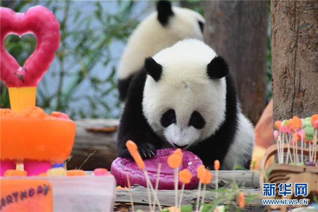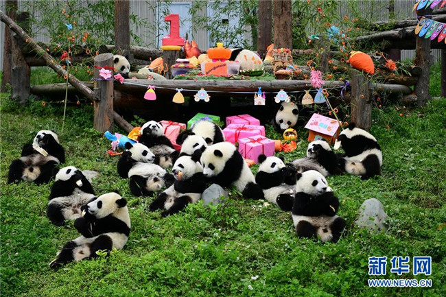 當日,在位于四川臥龍的中國大熊貓保護研究中心神樹坪基地的大熊貓幼兒園,2018年出生的18只大熊貓幼仔過了一場別開生面的集體生日。