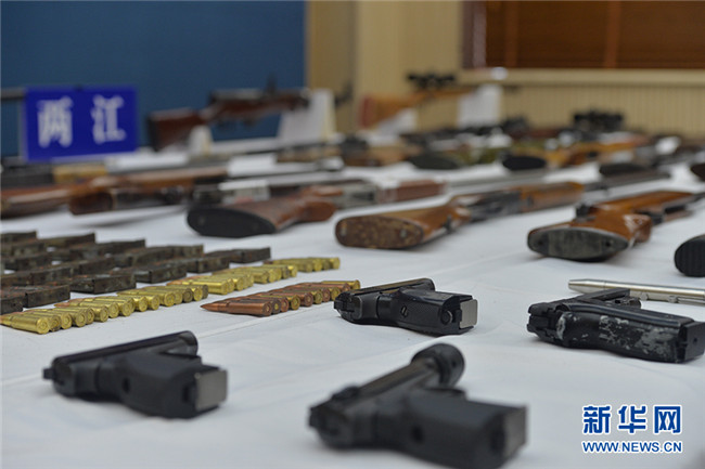 圖為繳獲的槍支子彈。新華網(wǎng)發(fā)(重慶兩江新區(qū)警方供圖)