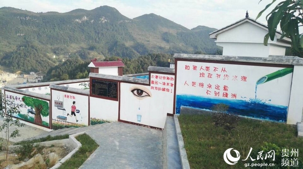 貴州務(wù)川縣百虎山農(nóng)村飲水安全鞏固提升工程水廠文化宣傳墻。貴州省水利廳供圖