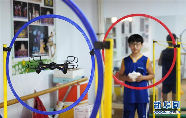 7月30日,學(xué)生在河北省涉縣青少年活動(dòng)中心進(jìn)行航模飛行練習(xí)。