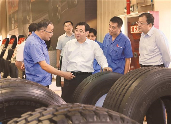 胡和平來(lái)到陜西建工金牛集團(tuán),聽(tīng)取生產(chǎn)經(jīng)營(yíng)情況介紹,得知企業(yè)近年來(lái)通過(guò)技術(shù)改造升級(jí)和服務(wù)模式創(chuàng)新實(shí)現(xiàn)較大發(fā)展,他十分高興,要求聚焦鍋爐制造領(lǐng)域,鞏固產(chǎn)業(yè)優(yōu)勢(shì),擴(kuò)大產(chǎn)能規(guī)模,實(shí)現(xiàn)更大效益。在延長(zhǎng)石油西北橡膠公司,胡和平察看鋼絲壓延、裁剪接合、一次成型等工藝流程,詢(xún)問(wèn)產(chǎn)品性能、技術(shù)特點(diǎn)、市場(chǎng)份額,勉勵(lì)公司加強(qiáng)核心技術(shù)攻關(guān),提升產(chǎn)品質(zhì)量,在市場(chǎng)競(jìng)爭(zhēng)中更好掌握主動(dòng)。