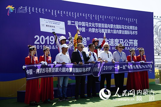 人民網(wǎng)呼和浩特8月21日電(富麗娟 實(shí)習(xí)生 李娜)8月21日上午,作為第二屆中國馬文化節(jié)暨首屆內(nèi)蒙古國際馬文化博覽會的重要活動之一的2019“一帶一路”內(nèi)蒙古速度馬公開賽,在內(nèi)蒙古少數(shù)民族群眾文化體育運(yùn)動中心開賽。比賽分為3場,共22對人馬組合參賽,爭奪國產(chǎn)純血馬1200米、成年馬組2750米和3歲馬組2000米比賽的桂冠。