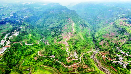 航拍大方縣對江鎮(zhèn)營興村通組公路。 周訓貴 攝