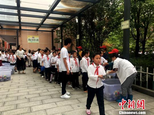 學(xué)校為學(xué)生準備了營養(yǎng)餐,學(xué)生排隊領(lǐng)?!垙?攝