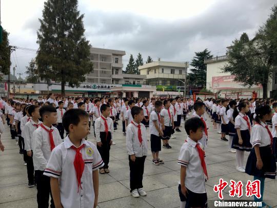 9月2日,金寨縣希望小學(xué)開學(xué)的第一天,學(xué)校舉行升旗儀式。 張強 攝