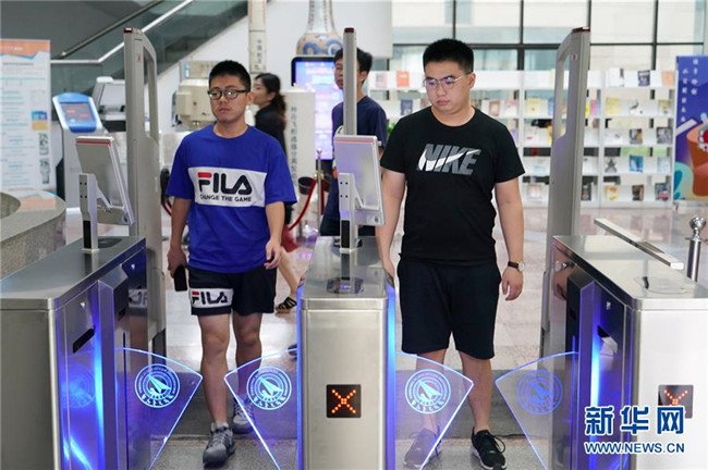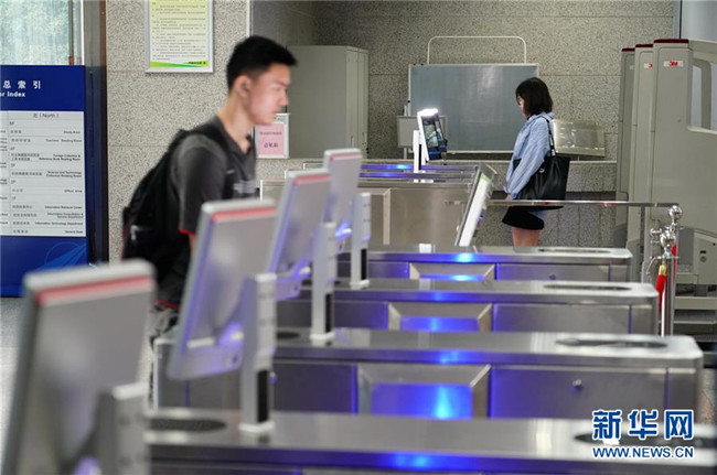 9月4日,西北工業(yè)大學(xué)學(xué)生“刷臉”進出圖書館。