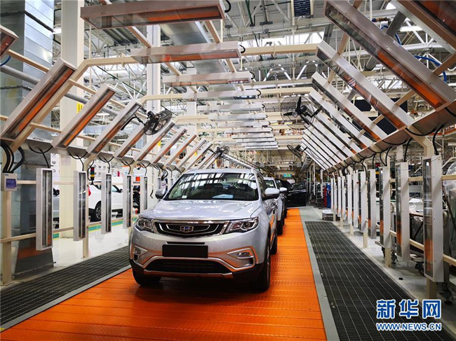 這是在白俄羅斯首都明斯克東北方向50公里處的白俄羅斯吉利全散件汽車制造廠總裝車間拍攝的準(zhǔn)備下線的汽車(2018年12月8日拍攝)。 新華社記者 張若玄 攝