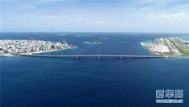 這是8月30日在馬爾代夫航拍的連接首都馬累和機(jī)場(chǎng)島的中馬友誼大橋。新華社發(fā)(王明亮攝)