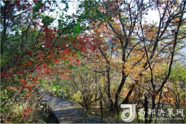 當(dāng)行走在長(zhǎng)長(zhǎng)石階的秋天午后,金色的陽光從依然茂密的樹冠隙間,篩露下萬道金光,映得滿山紅葉鮮紅光亮。站在山頂之上,秋風(fēng)徐來,峰迎秋霞,林嘯陣陣,置身其間,滿目是一派深秋的景象,不免飄飄欲仙……