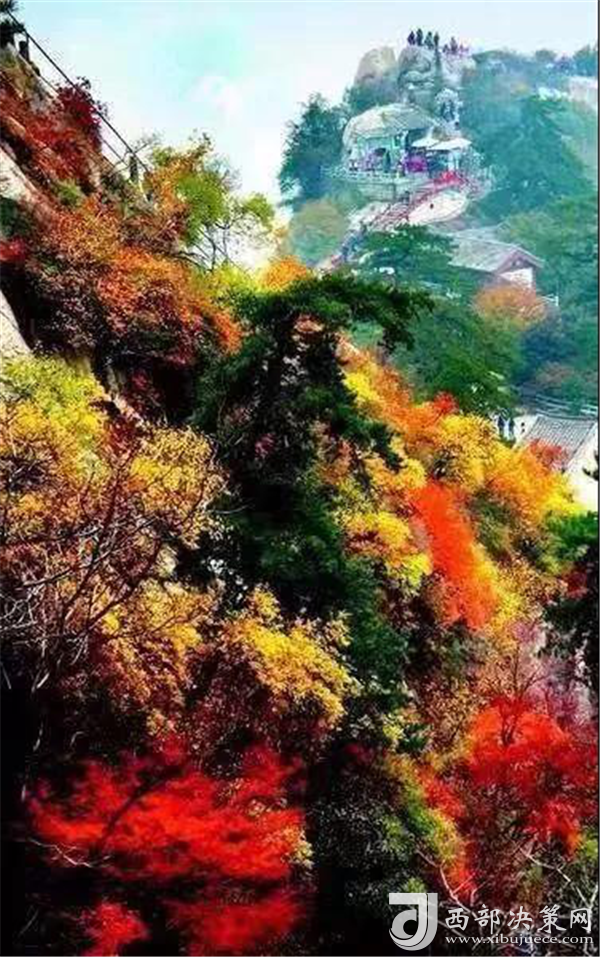 秋天的華山,溫度適中,紅葉滿山,山崖為底,松檜為墨,是休閑旅游的最佳季節(jié)。