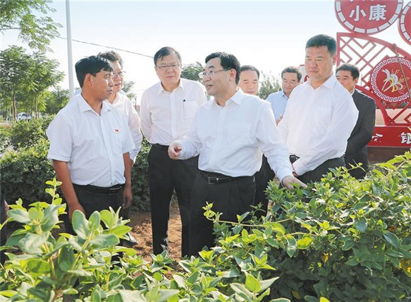 9月25日,省委書(shū)記胡和平來(lái)到蒲城縣堯山鎮(zhèn)閆家村金銀花現(xiàn)代農(nóng)業(yè)園區(qū),察看金銀花長(zhǎng)勢(shì),了解畝產(chǎn)、收益和帶動(dòng)脫貧致富效果。記者 宋紅梅攝