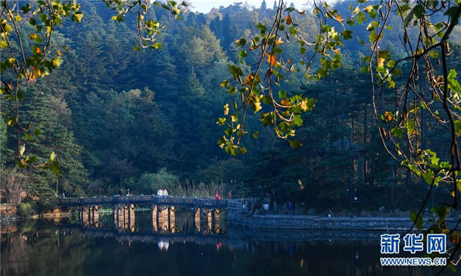 游客在廬山風(fēng)景區(qū)內(nèi)的如琴湖邊游玩(10月9日攝)。新華社記者 胡晨歡 攝
