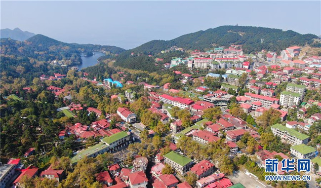 這是10月10日在廬山風(fēng)景區(qū)內(nèi)拍攝的牯嶺鎮(zhèn)(無人機拍攝)。新華社記者 胡晨歡 攝