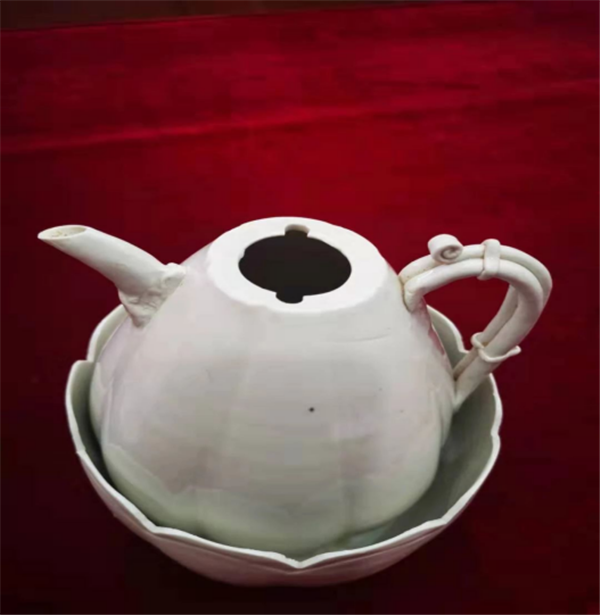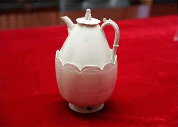 本次發(fā)現(xiàn)最具特色文物當屬宋代官窯白瓷——白釉獅鈕瓜棱形帶花口溫碗執(zhí)壺。該款文物造型精美、器型罕見,國內尚未發(fā)現(xiàn)同款,具有特別重要的歷史藝術和科學文化價值。經(jīng)陜西省文物鑒定中心鑒定:該文物屬國家一級,通高22.5厘米,壺口徑5厘米,底徑6.5厘米,溫碗口徑14厘米,底徑8.5厘米。該文物由蹲獅型鈕壺蓋、瓜棱形執(zhí)壺、帶鏤空足瓜腹形花口溫缽等三部分組成。從與該一級文物同時出土的慕志銘得知,該墓葬主人為宋代眉縣斜谷鎮(zhèn)下將張侍郎(相關于現(xiàn)今的鄉(xiāng)鎮(zhèn)教育專干)之父母(為合葬墓)。