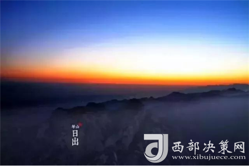 是時,但見夜幕自東方悄然隱退,晨曦初露,漸漸霞光瑰麗,云源奔涌。瞬間,一輪火球噴薄而出,繼而光芒四射,氣象萬千,整個世界大放光明,游人身心為之一振。待云霧散盡,蒼松翠柏,則更加清麗悅目,美妙神奇。故而,游名山者必登華山,登華山者必觀日。華山日出亦被列為華山自然風光中的重要景觀之一。