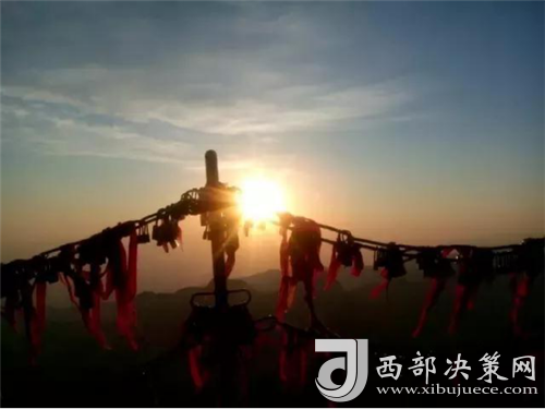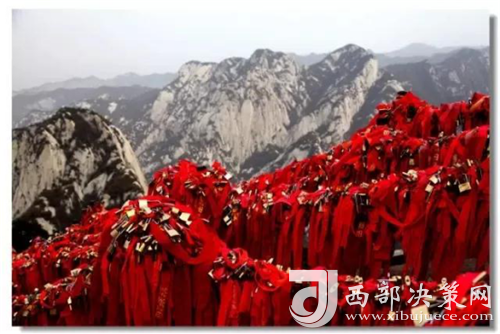 華山是一座愛情的殿堂。發(fā)生在華山上的每一個愛情故事都讓人感動、讓人頂禮膜拜。眾所周知的神話傳說《寶蓮燈》中,三圣母為了愛情,被二郎神用巨石壓在華山峰下;弄玉為了愛情,逃離安逸的生活,與蕭史雙雙來到華山,琴瑟合鳴;漢臣王咸不畏艱險,到華山尋找賢妻南陽公主等等這些愛情故事,感天動地,流傳不衰。也許是讓華山上這些動人的愛情故事所感染,不知從什么時候開始,游人將自己對美好愛情的向往,對理想愛情固若磐石的期望用一把把閃閃的金鎖,堅定的鎖在了華山之上,在華山的見證下,在華山神的保佑下,舉案齊眉、白頭偕老。