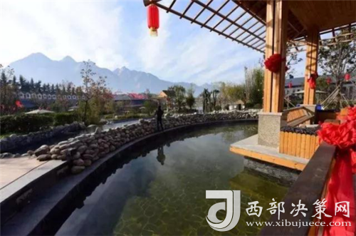 泡在溫泉里,遠眺巍峨的華山