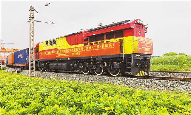 滿載125臺整車的專列從重慶沙坪壩區(qū)團(tuán)結(jié)村中心站駛出,標(biāo)志著西部陸海新通道整車出口常態(tài)化班列的開啟。(本報資料圖片) 記者 羅斌 攝