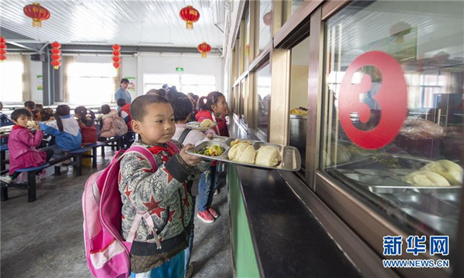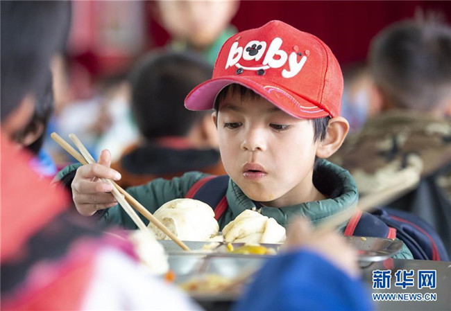 自實施農(nóng)村義務(wù)教育學(xué)生營養(yǎng)改善計劃以來,寧夏回族自治區(qū)積極為農(nóng)村學(xué)子提供免費的營養(yǎng)餐。從去年開始,寧夏固原市西吉縣的免費營養(yǎng)午餐迎來了升級換代,從原來的一道燴菜變成了如今的兩素一葷,餐具由餐桶換成了餐盤。在保證營養(yǎng)膳食搭配的同時,增加了學(xué)生的自主選擇性。從“吃得飽”到“吃得好”,升級換代的營養(yǎng)餐得到了廣大學(xué)生認(rèn)可。 新華社發(fā)(楊植森 攝)