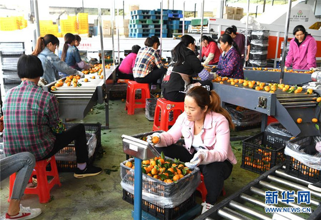 時下正是廣西鹿寨縣平山鎮(zhèn)數(shù)萬畝柑桔成熟上市的季節(jié)。據(jù)悉,2018年平山鎮(zhèn)柑桔產(chǎn)值3.29億元,隨著當?shù)馗探鄯N植面積不斷擴大,柑桔產(chǎn)業(yè)成為村民脫貧致富的重要產(chǎn)業(yè)。 新華社記者 周華 攝