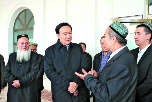 陳全國還來到高昌區(qū)紅星片區(qū)戈壁社區(qū)清真寺,調(diào)研宗教活動開展情況。他說,要全面貫徹黨的宗教工作基本方針,依法保障信教群眾正常宗教需求和正常宗教活動的開展,促進(jìn)宗教與社會主義社會相適應(yīng)。廣大宗教人士要大力弘揚(yáng)愛國愛教優(yōu)良傳統(tǒng),堅(jiān)守正道、正信正行,引導(dǎo)各族信教群眾為實(shí)現(xiàn)社會穩(wěn)定和長治久安作出積極貢獻(xiàn)。