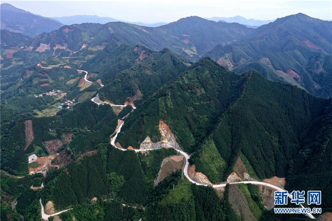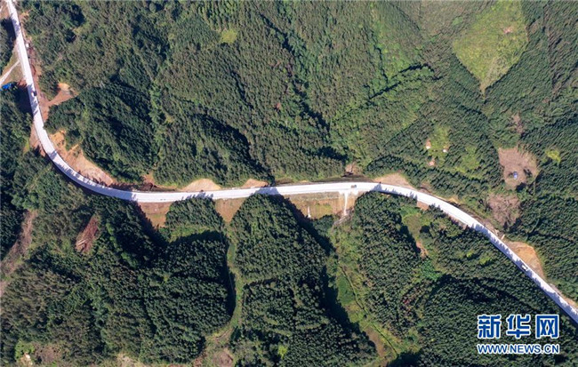 這是位于廣西融水苗族自治縣四榮鄉(xiāng)境內(nèi)在建的羅融二級公路(11月19日無人機拍攝)。 新華社記者 黃孝邦 攝