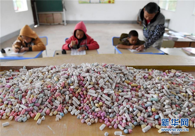 11月19日,在廣西上思縣那琴鄉(xiāng)中心小學(xué)逢通村教學(xué)點(diǎn),梁志雄給學(xué)生上課。新華社記者陸波岸攝