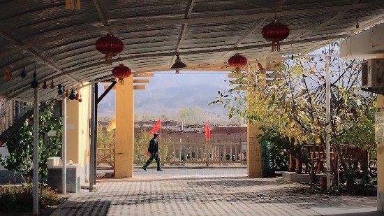 走進(jìn)沙坡頭新村童家園子,黃墻紅瓦的農(nóng)宅,干凈整潔的道路,各種果樹(shù)掩映中,一座座小院各有特色。因?yàn)樘鞖廪D(zhuǎn)涼,過(guò)了旅游季,大部分的農(nóng)家小院已經(jīng)歇業(yè),只有兩三家還在開(kāi)門(mén)營(yíng)業(yè)。