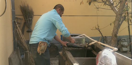 “童家大院”門(mén)前,50多歲的張淑琴正在清洗著農(nóng)家菜,準(zhǔn)備腌菜過(guò)冬。