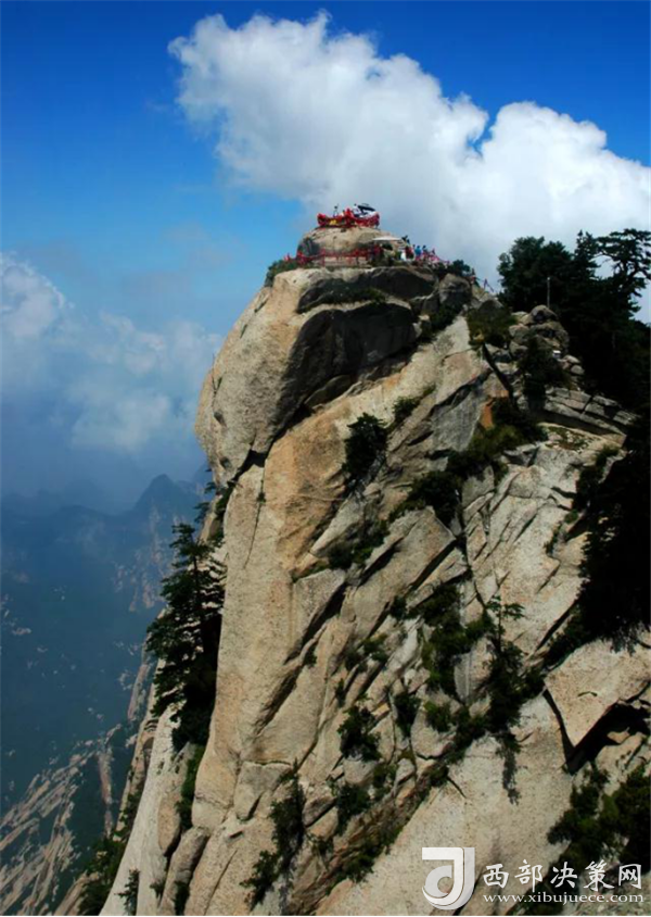 北峰是華山的最低峰,海拔1614.7米,“華山論劍碑”就立于此,北峰頂這里是觀景攬勝的最佳之地。南望有“天外三峰”之稱的東、西、南三峰渾然一體,直插云霄;北望,有公主峰;西邊有“獅子觀寶”、“金龜戲玉蟾”等奇石景觀。