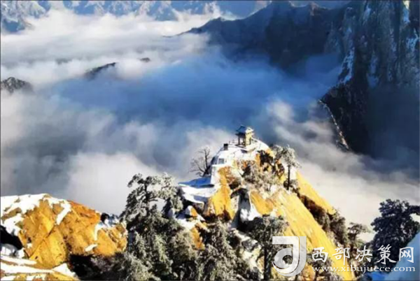 西峰又名蓮花峰,因翠云宮前有石如蓮瓣《山海經》載,上有池生千葉蓮花,故稱蓮花峰,芙蓉峰。海拔2082.6米,蓮峰夕照,是西峰最壯麗的景色,每當夕陽欲墜之際,満峰披霞鍍金,一派輝煌,真是“嶺背斜陽萬壑金”。西峰是華山最有觀賞價值的主峰之一,其峰勢險峻之驚人,傳說之動人,景觀之迷人,世所罕見。