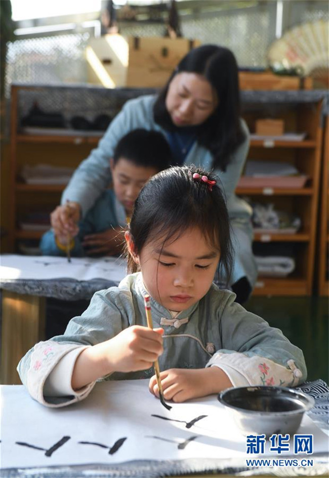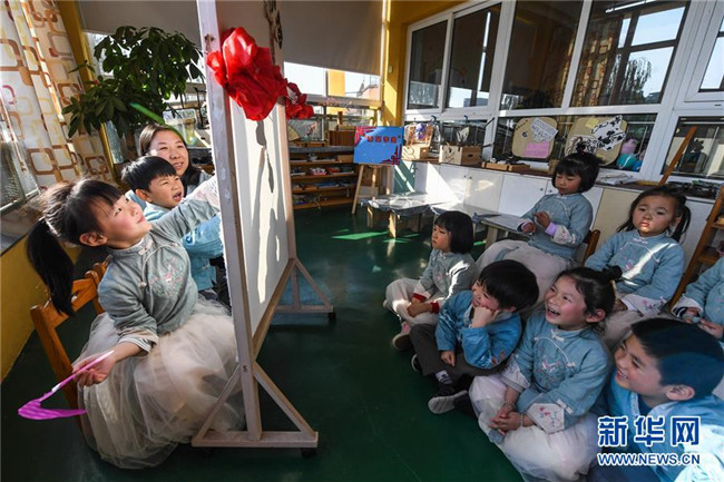 從2019年初開始,浙江省湖州市南太湖幼兒園開啟“國學(xué)課堂”,通過設(shè)立傳統(tǒng)禮儀、書法、剪紙、京劇、皮影戲等國學(xué)傳統(tǒng)文化課程,致力于將國學(xué)經(jīng)典教育滲透到幼兒日常生活學(xué)習(xí)中,培養(yǎng)幼兒的古典文化底蘊(yùn),教育幼兒從小培養(yǎng)良好的禮儀行為,讓幼兒們在傳統(tǒng)國學(xué)文化的滋養(yǎng)中成長。 新華社記者 徐昱 攝