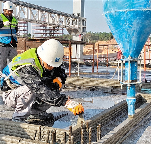 “工人可以趁著混凝土砂漿尚未凝固時(shí)在墻體底部開洞,為墻體內(nèi)的鋼筋籠與地基中的鋼筋焊接預(yù)留出空間。”中建二局廣東建設(shè)基地有限公司科技部副經(jīng)理黃云補(bǔ)充說,“手感像是切蛋糕,操作起來相當(dāng)方便”。