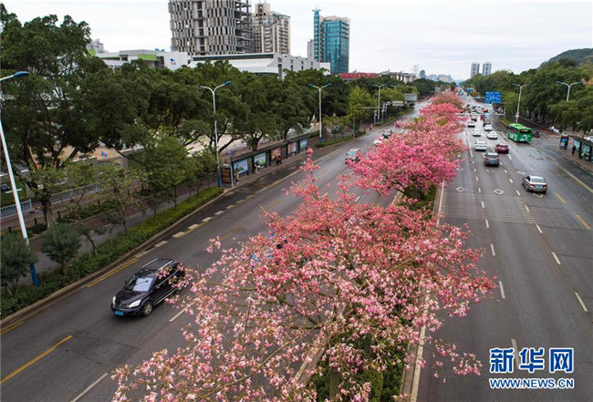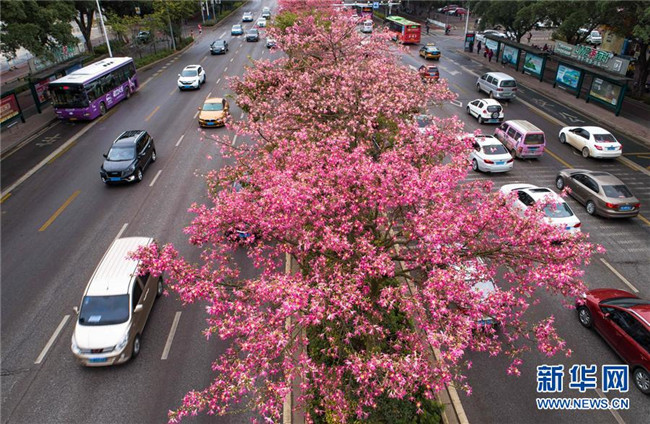 初冬時(shí)節(jié),廣西柳州市區(qū)東環(huán)大道、桂柳路等多條道路旁的1萬多株美麗異木棉進(jìn)入花期,競相綻放的紅色花朵將城市裝扮得格外美麗。 近年來,廣西柳州對城市進(jìn)行花化、彩化、香化,著力打造生態(tài)花園城市景觀。