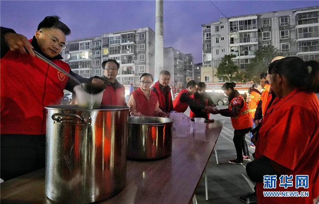 當日是冬至, 四川有喝羊湯的習俗。成都市雙流區(qū)黃甲街道100多名黨員志愿者聯(lián)合轄區(qū)內羊肉館商家、社區(qū)愛心企業(yè),開展了“暖冬靚湯行”志愿服務活動,為上百名環(huán)衛(wèi)工人、40多個困難家庭送上暖洋洋的羊肉湯。黃甲街道冬至日送羊肉湯的愛心行動已經(jīng)堅持了11年。