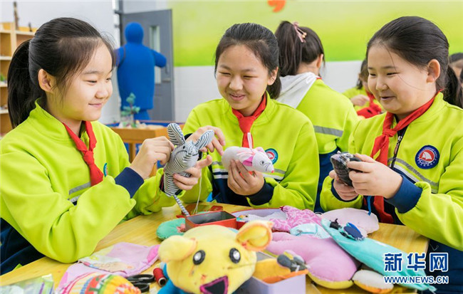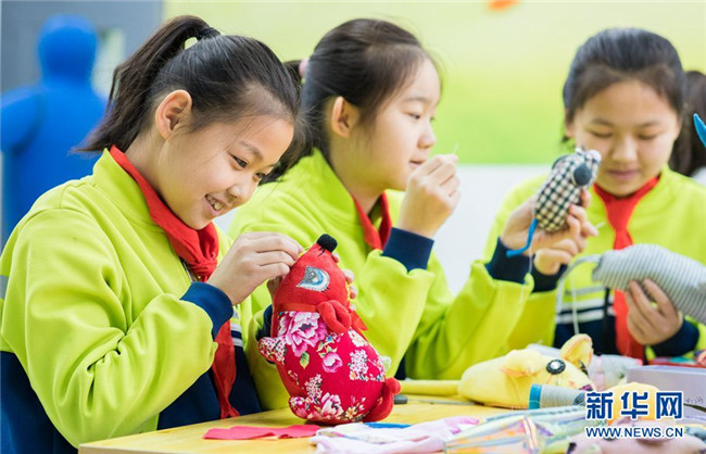 當(dāng)日,內(nèi)蒙古呼和浩特市玉泉區(qū)通順街小學(xué)“巧手社團(tuán)”的學(xué)生在老師的指導(dǎo)下,利用身邊的布頭、絲綿等廢棄物,制作生肖鼠布藝作品,表達(dá)對(duì)新年的美好祝愿。近年來,玉泉區(qū)教育部門大力推動(dòng)“傳統(tǒng)文化進(jìn)校園”活動(dòng),在當(dāng)?shù)貙W(xué)校里開設(shè)剪紙、面塑、戲曲等民間藝術(shù)課程,讓學(xué)生感受傳統(tǒng)文化的魅力。 新華網(wǎng) 發(fā)(丁根厚 攝)