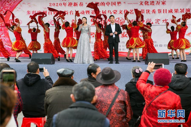 當(dāng)日,貴州省畢節(jié)市2020年迎新春“我們的中國(guó)夢(mèng)”文化進(jìn)萬(wàn)家惠民系列活動(dòng)在大方縣易地扶貧搬遷集中安置區(qū)奢香古鎮(zhèn)舉行。文化志愿者用小品、歌舞、義寫春聯(lián)、拍“全家福”等形式為搬遷群眾帶來(lái)了一場(chǎng)精彩的文化“盛宴”,讓易地扶貧搬遷安置點(diǎn)充滿濃濃的年味。