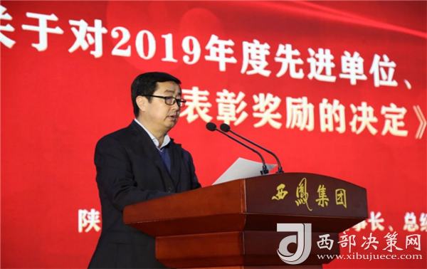 西鳳股份公司副董事長、總經(jīng)理賈智勇宣讀《關(guān)于對2019年度先進單位、先進個人進行表彰獎勵的決定》