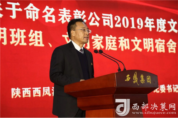 西鳳集團公司黨委副書記、紀委書記劉周虎宣讀《關(guān)于命名表彰公司2019年度文明單位、文明班組、文明家庭和文明宿舍的決定》