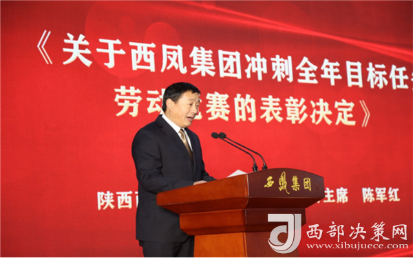 西鳳集團公司勞動競賽領(lǐng)導小組辦公室主任、工會主席陳軍紅宣讀《關(guān)于西鳳集團沖刺全年目標任務勞動競賽的表彰決定》