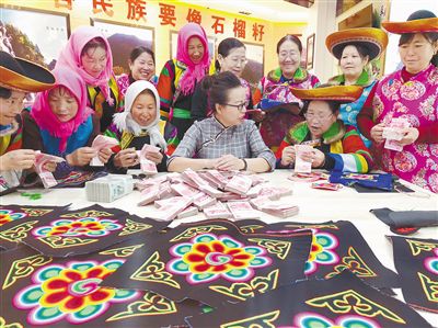 素隆姑公司在給繡娘分紅?;ブh扶貧開發(fā)局供圖
