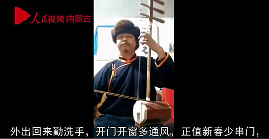 內(nèi)蒙古牧民用“好來寶”宣傳疫情防控知識。視頻截圖