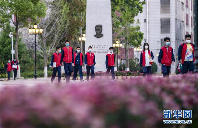 3月23日,昆明市第一中學(xué)高三年級學(xué)生進(jìn)入校園準(zhǔn)備上課。新華社記者 江文耀 攝