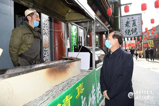 3月29日,自治區(qū)黨委書記、人大常委會主任石泰峰在呼和浩特市玉泉區(qū)塞上街了解商戶經(jīng)營情況。內(nèi)蒙古日報社融媒體記者 袁永紅 攝