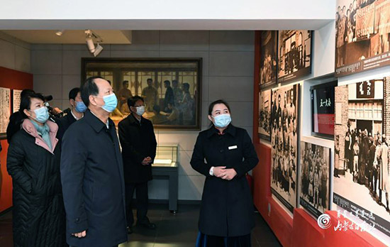 石泰峰驅(qū)車來到塔布賽鄉(xiāng)塔布賽村,參觀烏蘭夫故居,緬懷革命先輩的豐功偉績。在陳展室內(nèi),石泰峰頻頻駐足,聽解說、看圖文,不時詢問歷史細(xì)節(jié),詳細(xì)了解紅色教育和游客參觀等情況。他強(qiáng)調(diào),要傳承好紅色基因,開展好革命傳統(tǒng)教育和初心使命教育,同時充分利用紅色資源,大力推進(jìn)紅色旅游發(fā)展。