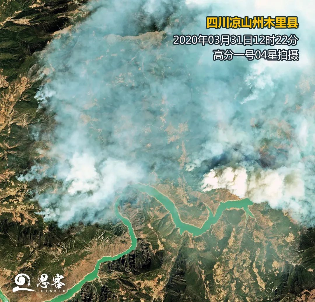 ▲衛(wèi)星遙感監(jiān)測四川涼山州森林大火。衛(wèi)星數(shù)據(jù)來源:高分一號